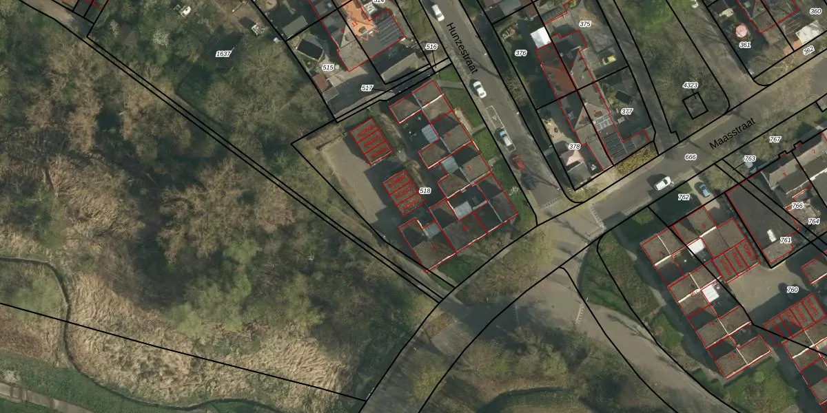 Maasstraat 8-GB01 is gelegen op kadastraal perceel HLN01R518. Deze kadastrale aanduiding is uniek en wordt gebruikt door het Kadaster om eigendomsrechten en andere zakelijke rechten vast te leggen. Het perceel maakt onderdeel uit van de kadastrale gemeente Heerlen.