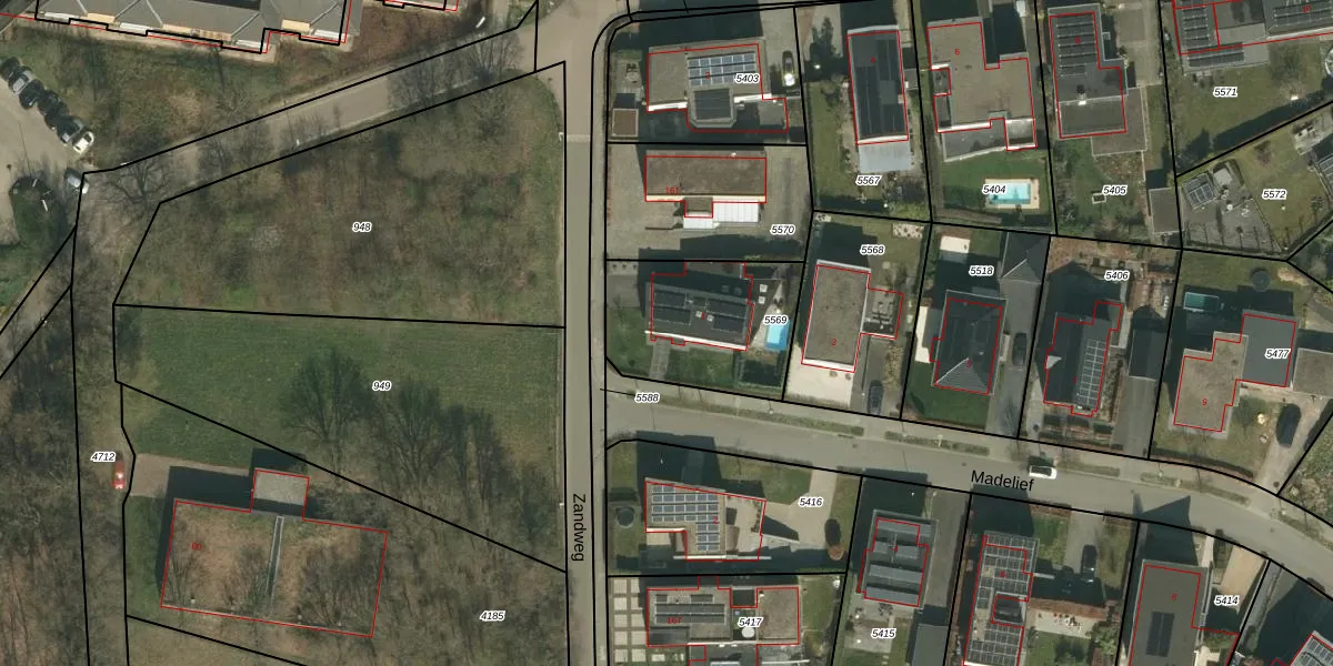 Madelief 1 is gelegen op kadastraal perceel HLN01K5569. Deze kadastrale aanduiding is uniek en wordt gebruikt door het Kadaster om eigendomsrechten en andere zakelijke rechten vast te leggen. Het perceel maakt onderdeel uit van de kadastrale gemeente Heerlen.