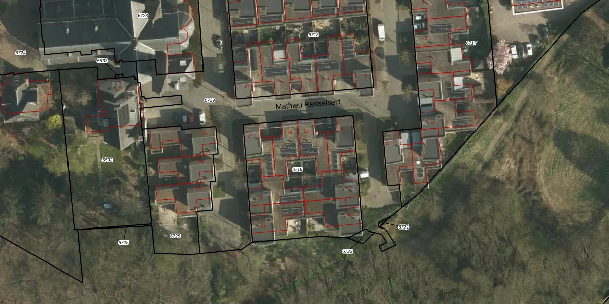 Mathieu Kesselserf 23 is gelegen op kadastraal perceel HLN01G6719. Deze kadastrale aanduiding is uniek en wordt gebruikt door het Kadaster om eigendomsrechten en andere zakelijke rechten vast te leggen. Het perceel maakt onderdeel uit van de kadastrale gemeente Heerlen.