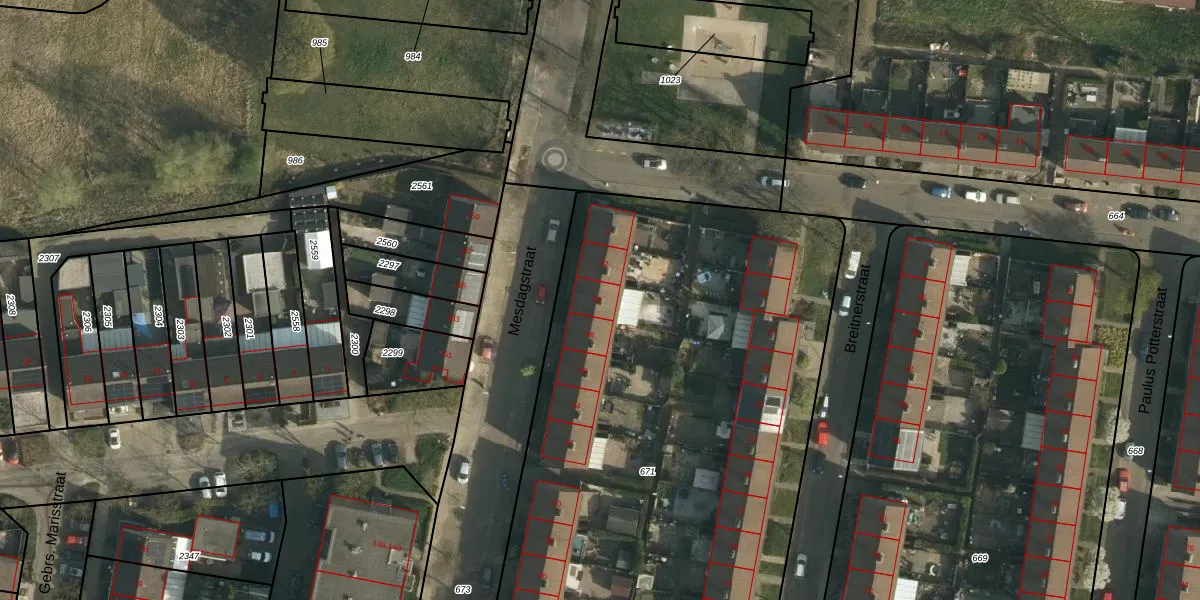Het perceel waarop Mesdagstraat 50 staat heeft een oppervlakte van 4080 m². Dit is een zeer groot perceel. De perceeloppervlakte wordt geregistreerd door het Kadaster. Gedetailleerde informatie over de maten van dit perceel kunt u vinden in het rapport Kadastrale kaart met maatvoering van Mesdagstraat 50.