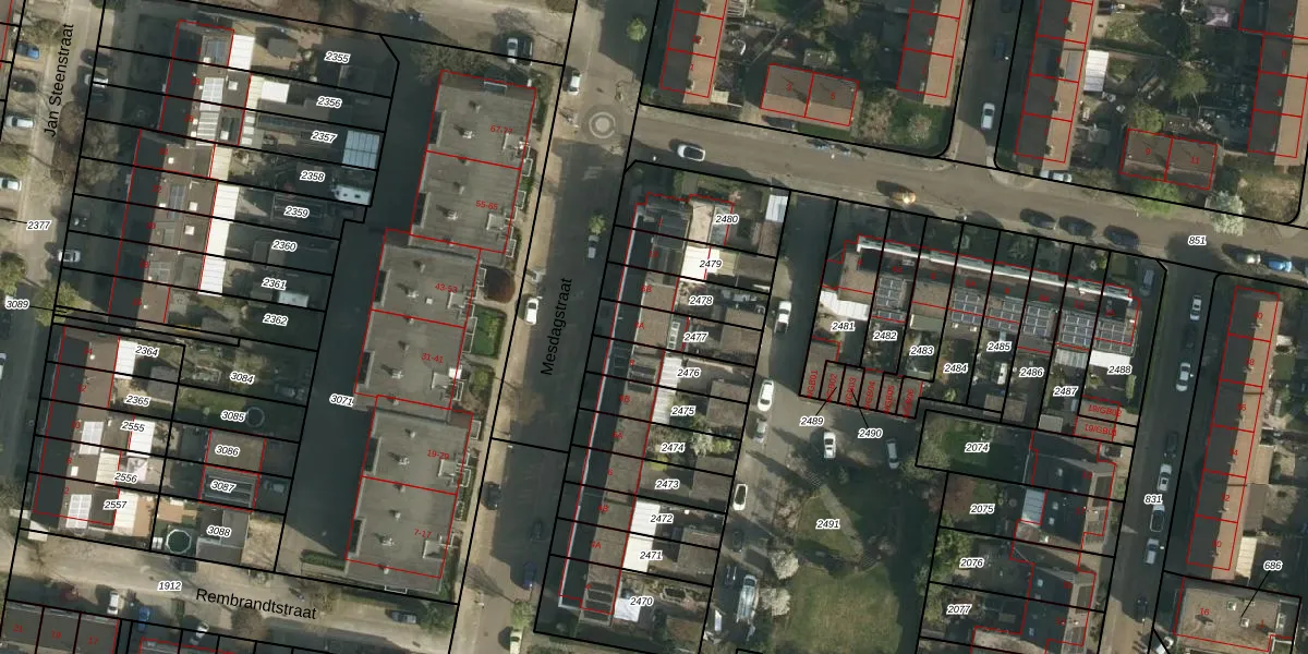 Mesdagstraat 8-A is gelegen op kadastraal perceel HLN01M2477. Deze kadastrale aanduiding is uniek en wordt gebruikt door het Kadaster om eigendomsrechten en andere zakelijke rechten vast te leggen. Het perceel maakt onderdeel uit van de kadastrale gemeente Heerlen.