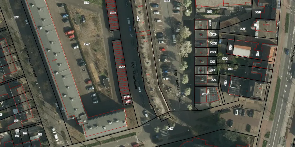 Mgr. Feronstraat 18 is gelegen op kadastraal perceel HLN01B5782. Deze kadastrale aanduiding is uniek en wordt gebruikt door het Kadaster om eigendomsrechten en andere zakelijke rechten vast te leggen. Het perceel maakt onderdeel uit van de kadastrale gemeente Heerlen.