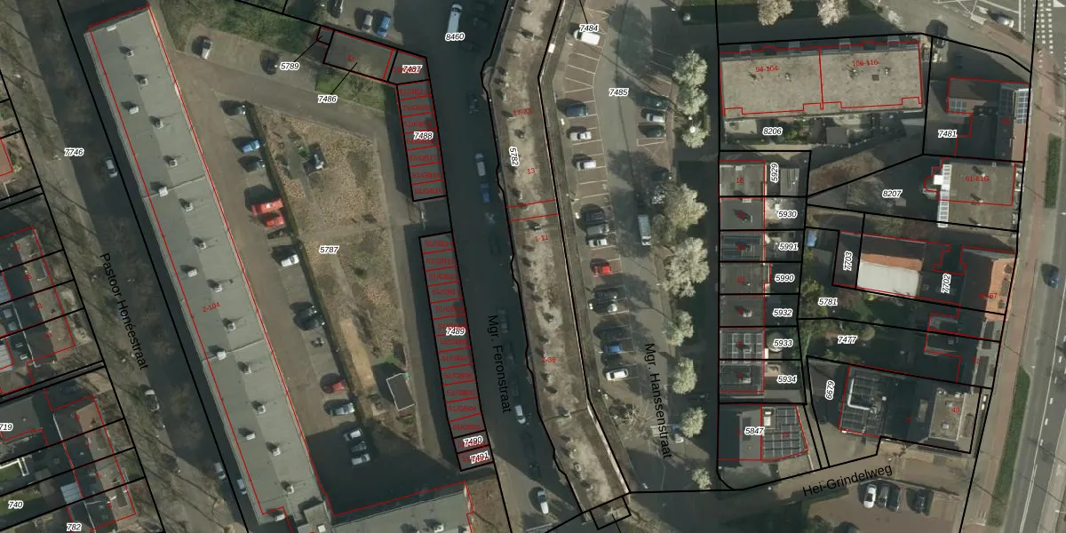 Mgr. Feronstraat 30 is gelegen op kadastraal perceel HLN01B5782. Deze kadastrale aanduiding is uniek en wordt gebruikt door het Kadaster om eigendomsrechten en andere zakelijke rechten vast te leggen. Het perceel maakt onderdeel uit van de kadastrale gemeente Heerlen.
