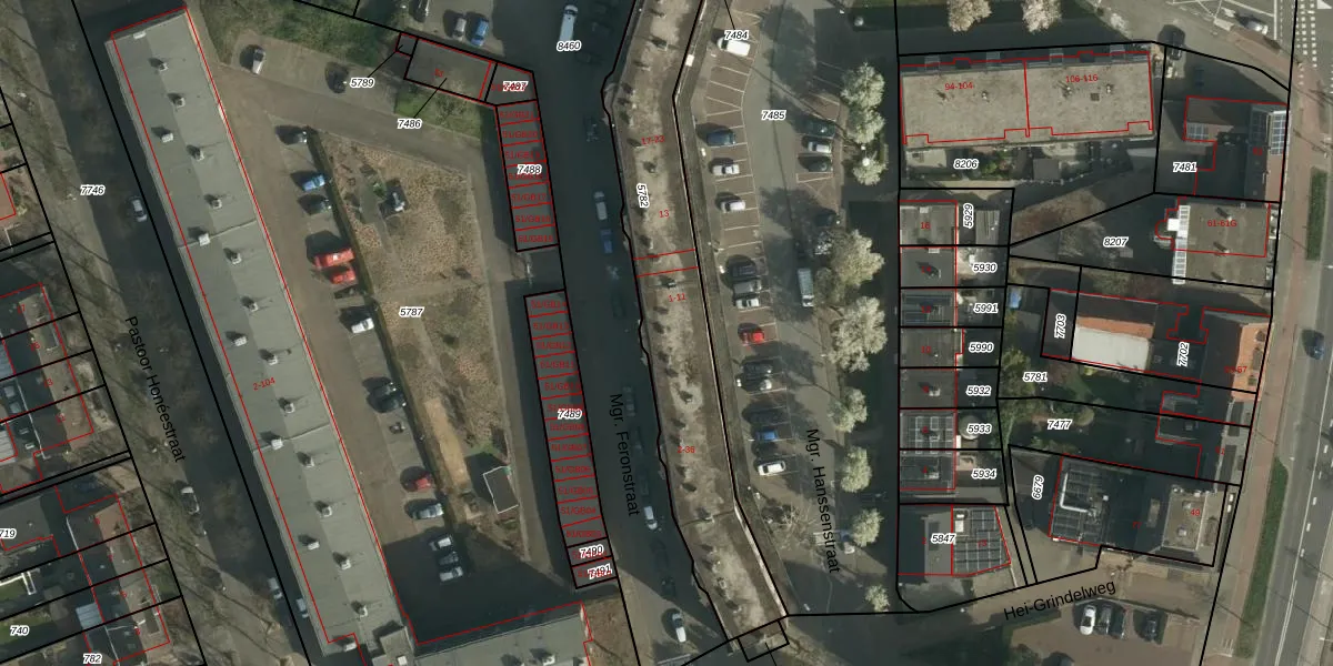 Mgr. Feronstraat 32 is gelegen op kadastraal perceel HLN01B5782. Deze kadastrale aanduiding is uniek en wordt gebruikt door het Kadaster om eigendomsrechten en andere zakelijke rechten vast te leggen. Het perceel maakt onderdeel uit van de kadastrale gemeente Heerlen.