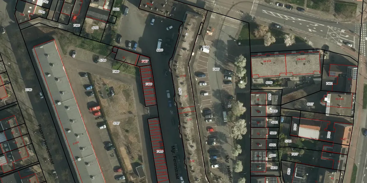 Mgr. Feronstraat 38 is gelegen op kadastraal perceel HLN01B5782. Deze kadastrale aanduiding is uniek en wordt gebruikt door het Kadaster om eigendomsrechten en andere zakelijke rechten vast te leggen. Het perceel maakt onderdeel uit van de kadastrale gemeente Heerlen.