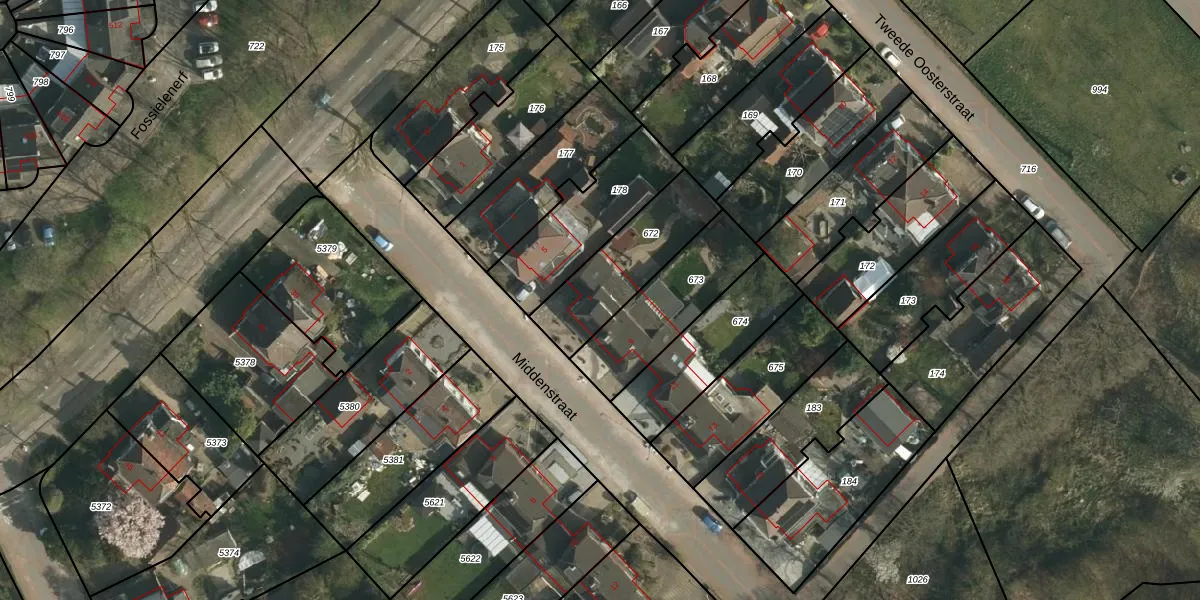 Het perceel waarop Middenstraat 7 staat heeft een oppervlakte van 357 m². Dit is een groot perceel. De perceeloppervlakte wordt geregistreerd door het Kadaster. Gedetailleerde informatie over de maten van dit perceel kunt u vinden in het rapport Kadastrale kaart met maatvoering van Middenstraat 7.