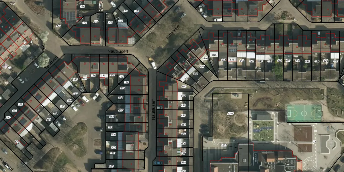 Gebruik de zoekbalk of klik op een perceel voor informatie over de adressen binnen dit perceel.