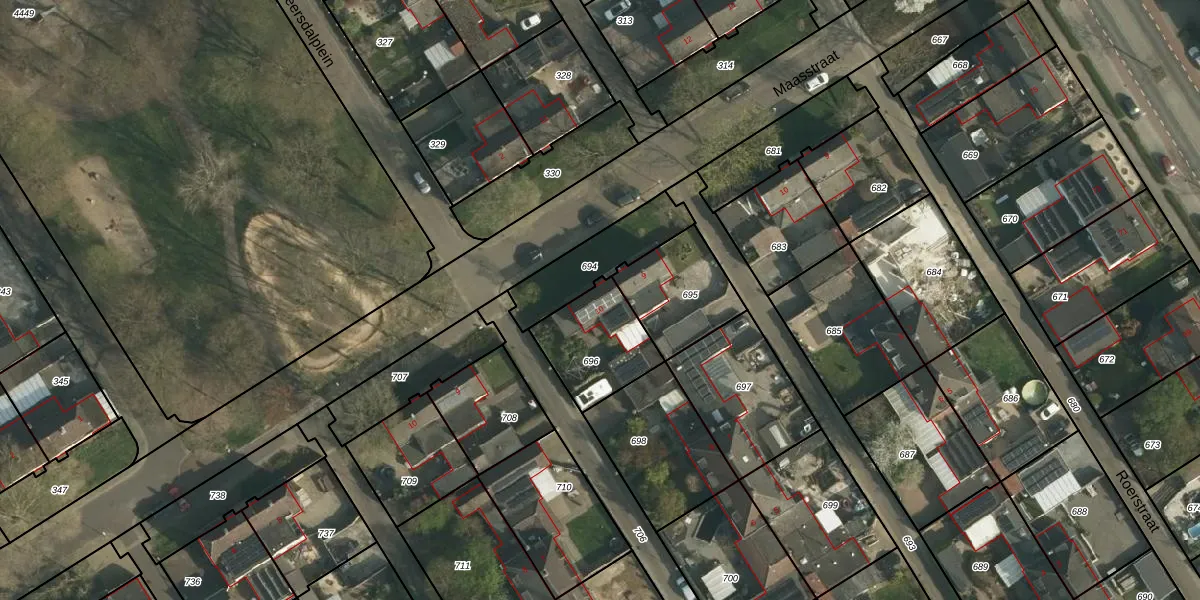 Het perceel waarop het adres ligt is HLN01-R-696. De afkorting 'HLN01' staat voor kadastrale gemeente Heerlen. De gemiddelde perceelgrootte in Heerlen is 1399,59 m². Dit perceel is kleiner: de perceeloppervlakte bedraagt 277 m². Het kleinste perceel in de kadastrale gemeente is 0 m² groot. De grootste perceeloppervlakte is 86,1 ha. Er zijn geen andere adressen aanwezig op het perceel. In de Basisregistratie Kadaster (BRK) werden de grenzen van het perceel geregistreerd op 29-05-2009.