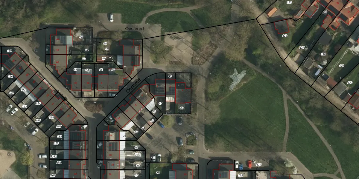 Oestererf 1 is gelegen op kadastraal perceel HLN01U49. Deze kadastrale aanduiding is uniek en wordt gebruikt door het Kadaster om eigendomsrechten en andere zakelijke rechten vast te leggen. Het perceel maakt onderdeel uit van de kadastrale gemeente Heerlen.