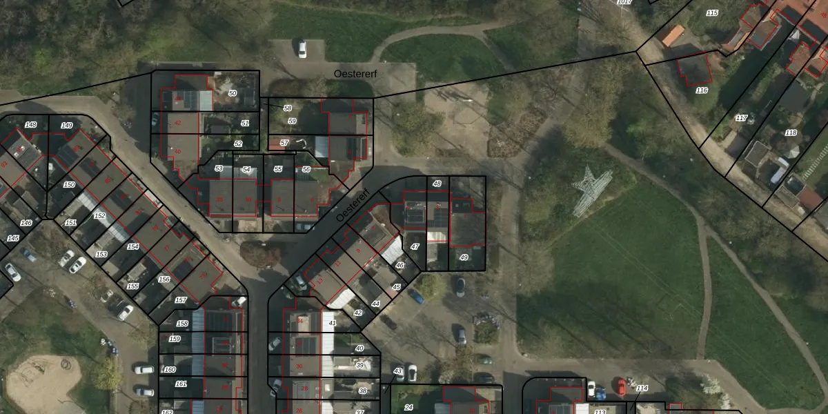 Oestererf 5 is gelegen op kadastraal perceel HLN01U47. Deze kadastrale aanduiding is uniek en wordt gebruikt door het Kadaster om eigendomsrechten en andere zakelijke rechten vast te leggen. Het perceel maakt onderdeel uit van de kadastrale gemeente Heerlen.