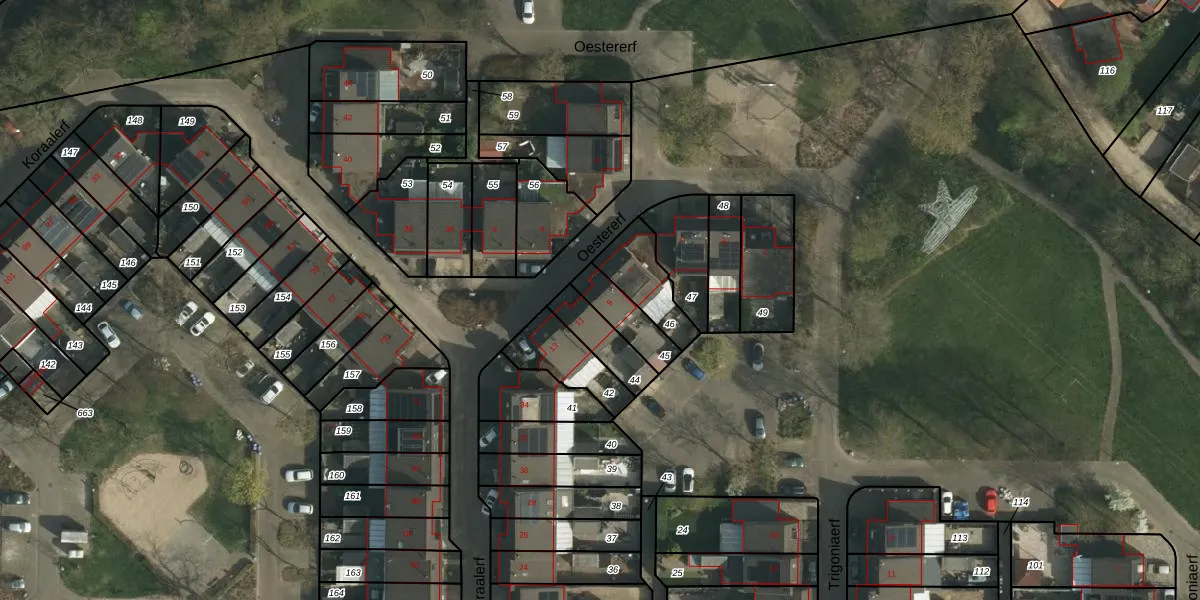 Het perceel waarop Oestererf 9 staat heeft een oppervlakte van 112 m². Dit is een middelgroot perceel. De perceeloppervlakte wordt geregistreerd door het Kadaster. Gedetailleerde informatie over de maten van dit perceel kunt u vinden in het rapport Kadastrale kaart met maatvoering van Oestererf 9.