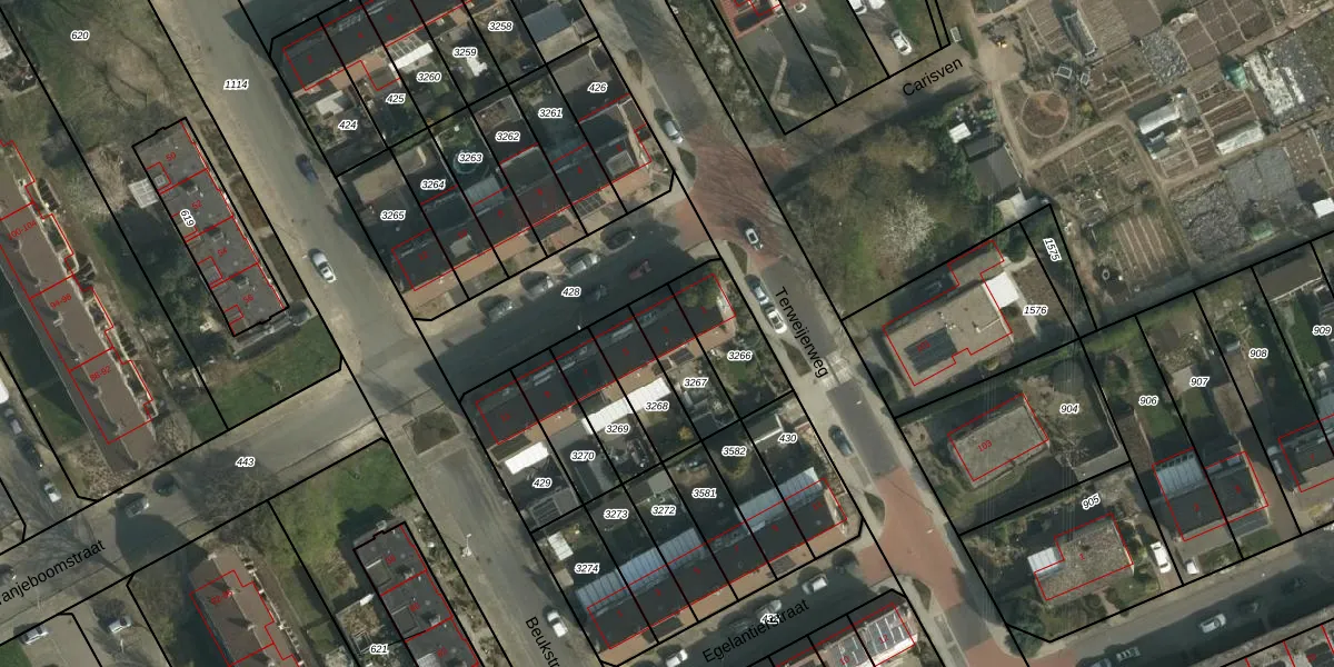 Gebruik de zoekbalk of klik op een perceel voor informatie over de adressen binnen dit perceel.