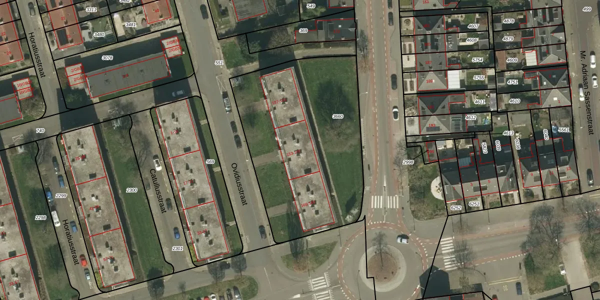 Het perceel waarop Ovidiusstraat 165 staat heeft een oppervlakte van 2110 m². Dit is een zeer groot perceel. De perceeloppervlakte wordt geregistreerd door het Kadaster. Gedetailleerde informatie over de maten van dit perceel kunt u vinden in het rapport Kadastrale kaart met maatvoering van Ovidiusstraat 165.
