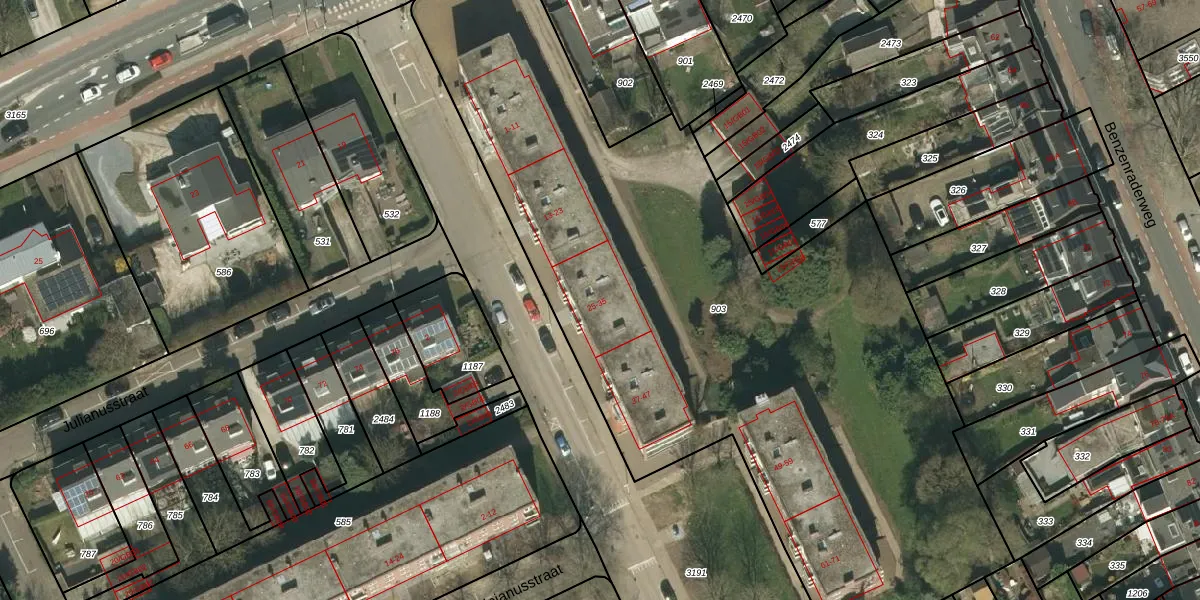 Het perceel waarop Ovidiusstraat 35 staat heeft een oppervlakte van 4373 m². Dit is een zeer groot perceel. De perceeloppervlakte wordt geregistreerd door het Kadaster. Gedetailleerde informatie over de maten van dit perceel kunt u vinden in het rapport Kadastrale kaart met maatvoering van Ovidiusstraat 35.