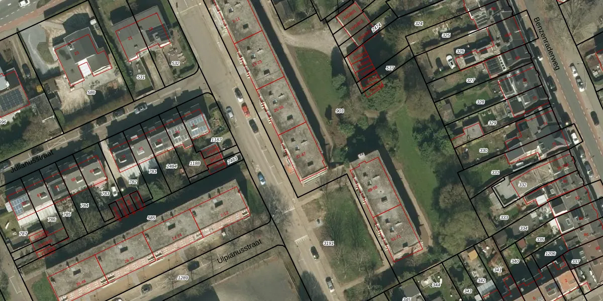 Het perceel waarop Ovidiusstraat 39 staat heeft een oppervlakte van 4373 m². Dit is een zeer groot perceel. De perceeloppervlakte wordt geregistreerd door het Kadaster. Gedetailleerde informatie over de maten van dit perceel kunt u vinden in het rapport Kadastrale kaart met maatvoering van Ovidiusstraat 39.