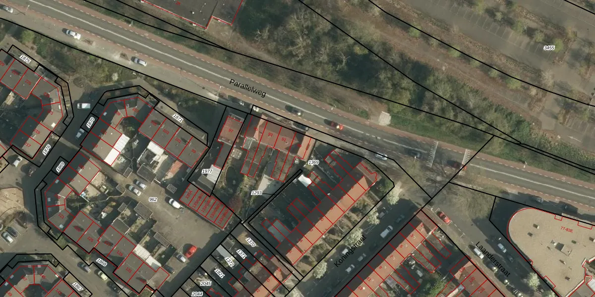 Parallelweg 89 is gelegen op kadastraal perceel HLN01L1369. Deze kadastrale aanduiding is uniek en wordt gebruikt door het Kadaster om eigendomsrechten en andere zakelijke rechten vast te leggen. Het perceel maakt onderdeel uit van de kadastrale gemeente Heerlen.