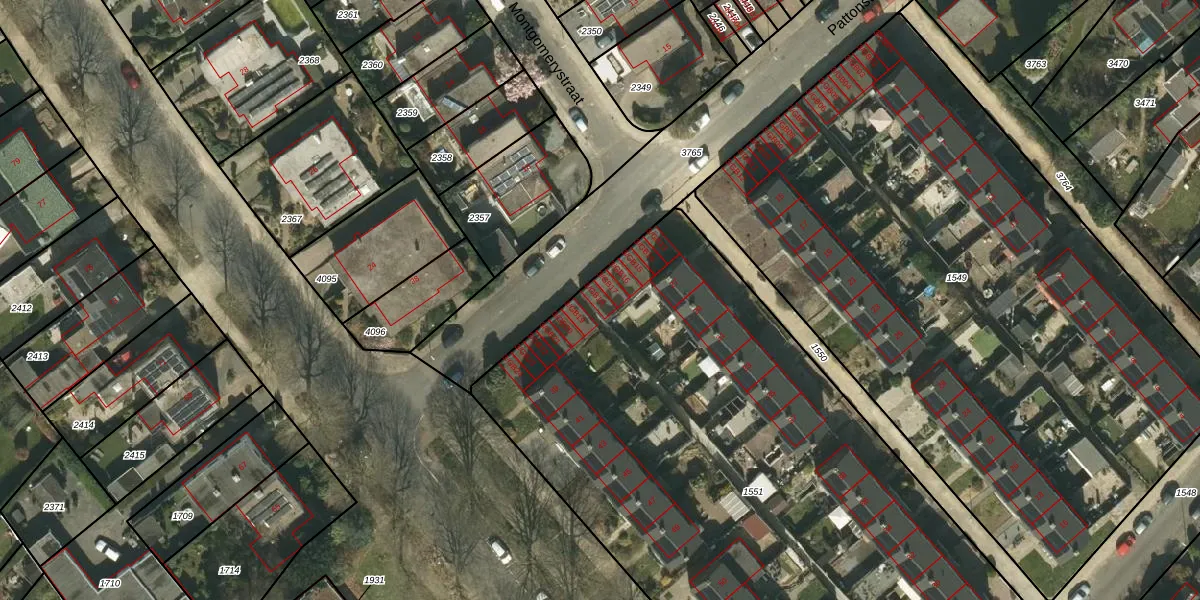 Het perceel waarop Pattonstraat 3-GB18 staat heeft een oppervlakte van 4290 m². Dit is een zeer groot perceel. De perceeloppervlakte wordt geregistreerd door het Kadaster. Gedetailleerde informatie over de maten van dit perceel kunt u vinden in het rapport Kadastrale kaart met maatvoering van Pattonstraat 3-GB18.