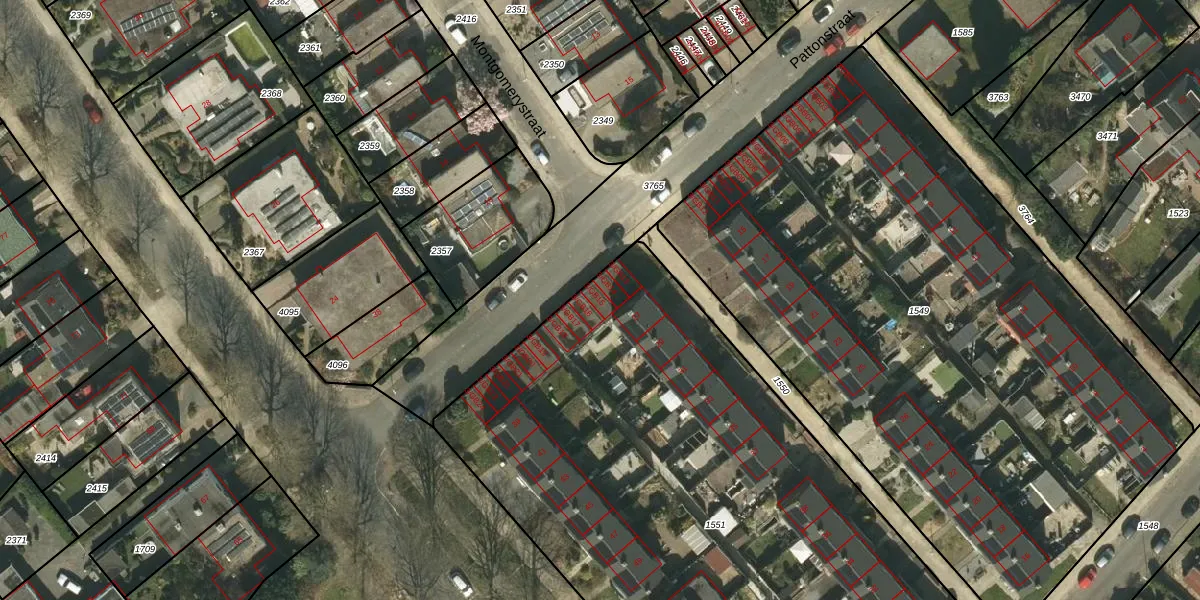Het perceel waarop Pattonstraat 3-GB15 staat heeft een oppervlakte van 4290 m². Dit is een zeer groot perceel. De perceeloppervlakte wordt geregistreerd door het Kadaster. Gedetailleerde informatie over de maten van dit perceel kunt u vinden in het rapport Kadastrale kaart met maatvoering van Pattonstraat 3-GB15.