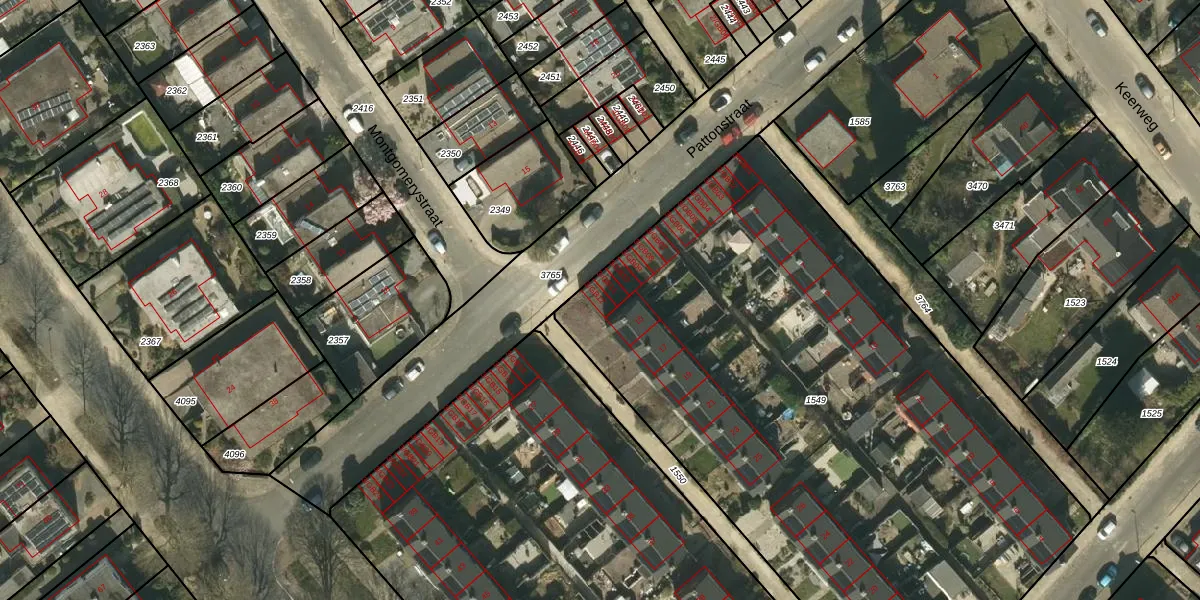 Het perceel waarop Pattonstraat 3-GB12 staat heeft een oppervlakte van 4025 m². Dit is een zeer groot perceel. De perceeloppervlakte wordt geregistreerd door het Kadaster. Gedetailleerde informatie over de maten van dit perceel kunt u vinden in het rapport Kadastrale kaart met maatvoering van Pattonstraat 3-GB12.
