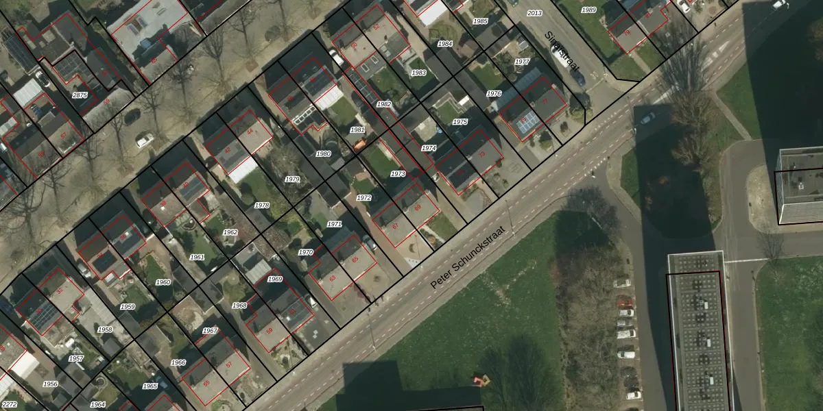 Het perceel waarop Peter Schunckstraat 69 staat heeft een oppervlakte van 300 m². Dit is een groot perceel. De perceeloppervlakte wordt geregistreerd door het Kadaster. Gedetailleerde informatie over de maten van dit perceel kunt u vinden in het rapport Kadastrale kaart met maatvoering van Peter Schunckstraat 69.