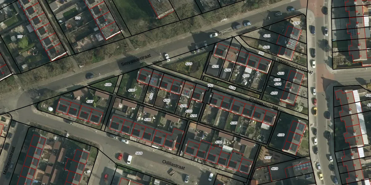 Gebruik de zoekbalk of klik op een perceel voor informatie over de adressen binnen dit perceel.