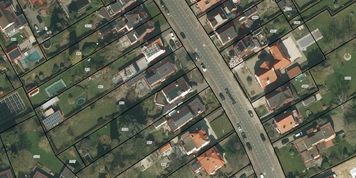 Het perceel waarop Pijnsweg 16 staat heeft een oppervlakte van 1125 m². Dit is een zeer groot perceel. De perceeloppervlakte wordt geregistreerd door het Kadaster. Gedetailleerde informatie over de maten van dit perceel kunt u vinden in het rapport Kadastrale kaart met maatvoering van Pijnsweg 16.