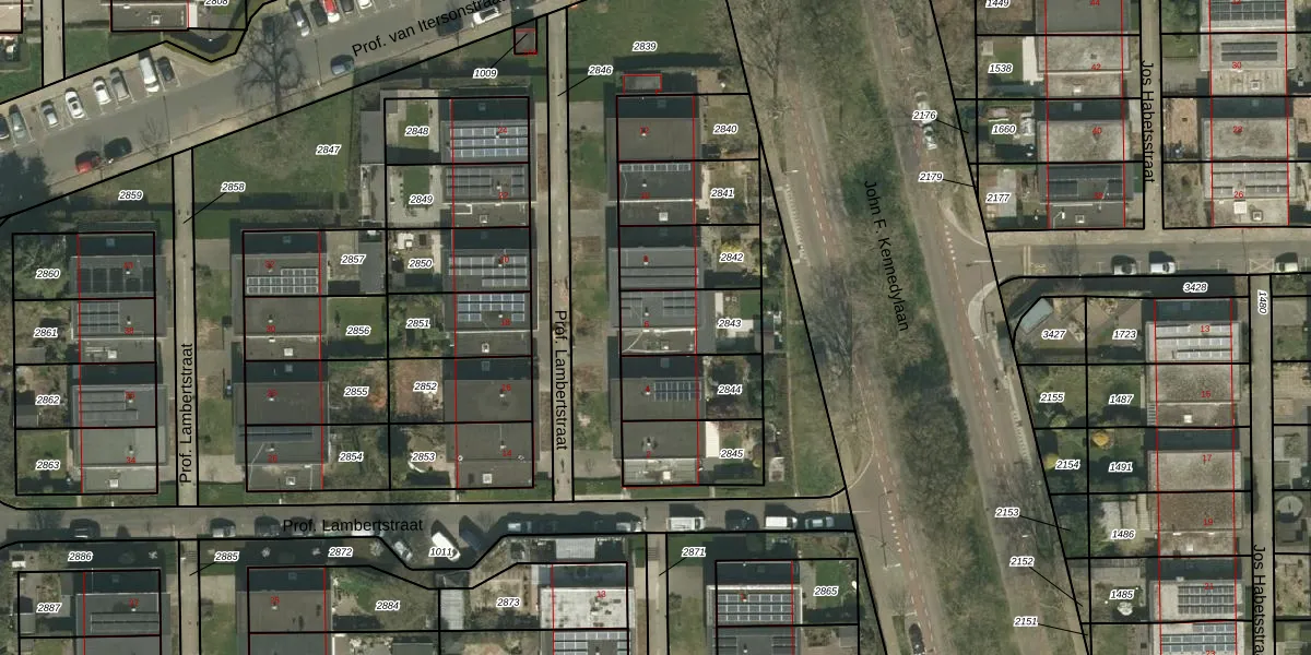 Prof. Lambertstraat 6 is gelegen op kadastraal perceel HLN01H2843. Deze kadastrale aanduiding is uniek en wordt gebruikt door het Kadaster om eigendomsrechten en andere zakelijke rechten vast te leggen. Het perceel maakt onderdeel uit van de kadastrale gemeente Heerlen.