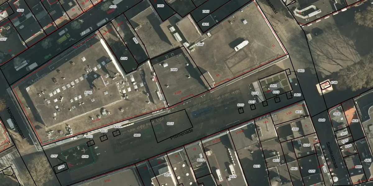 Het perceel waarop Promenade 8 staat heeft een oppervlakte van 608 m². Dit is een groot perceel. De perceeloppervlakte wordt geregistreerd door het Kadaster. Gedetailleerde informatie over de maten van dit perceel kunt u vinden in het rapport Kadastrale kaart met maatvoering van Promenade 8.