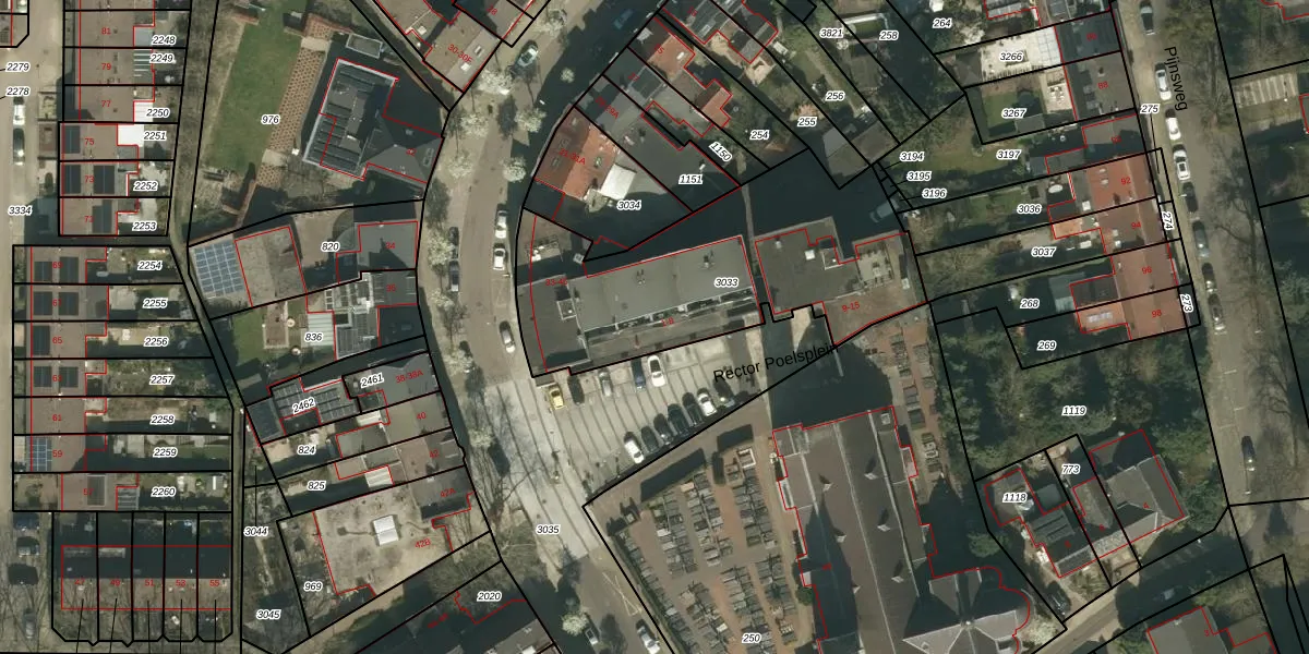 Het perceel waarop Rector Poelsplein 4 staat heeft een oppervlakte van 1265 m². Dit is een zeer groot perceel. De perceeloppervlakte wordt geregistreerd door het Kadaster. Gedetailleerde informatie over de maten van dit perceel kunt u vinden in het rapport Kadastrale kaart met maatvoering van Rector Poelsplein 4.
