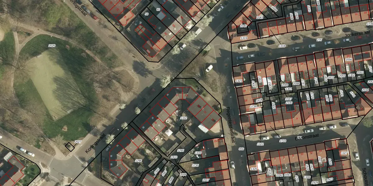 Het perceel waarop Regentessestraat 25 staat heeft een oppervlakte van 1245 m². Dit is een zeer groot perceel. De perceeloppervlakte wordt geregistreerd door het Kadaster. Gedetailleerde informatie over de maten van dit perceel kunt u vinden in het rapport Kadastrale kaart met maatvoering van Regentessestraat 25.