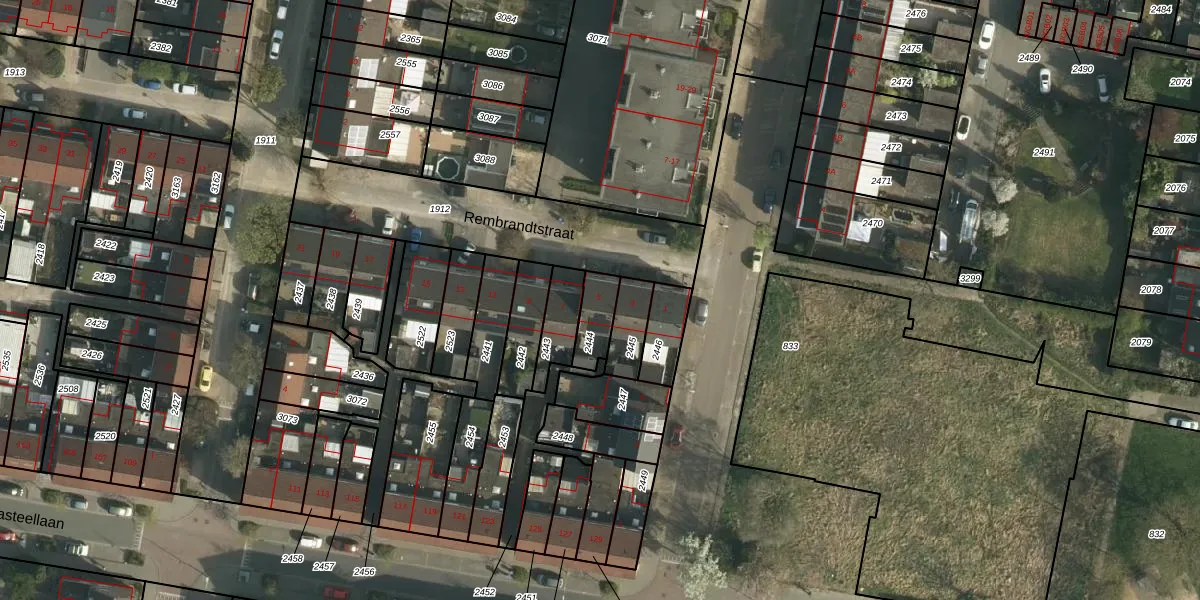 Het perceel waarop Rembrandtstraat 5 staat heeft een oppervlakte van 92 m². Dit is een klein perceel. De perceeloppervlakte wordt geregistreerd door het Kadaster. Gedetailleerde informatie over de maten van dit perceel kunt u vinden in het rapport Kadastrale kaart met maatvoering van Rembrandtstraat 5.