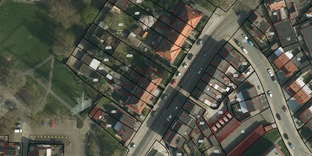 Het perceel waarop Rennemigstraat 14 staat heeft een oppervlakte van 464 m². Dit is een groot perceel. De perceeloppervlakte wordt geregistreerd door het Kadaster. Gedetailleerde informatie over de maten van dit perceel kunt u vinden in het rapport Kadastrale kaart met maatvoering van Rennemigstraat 14.