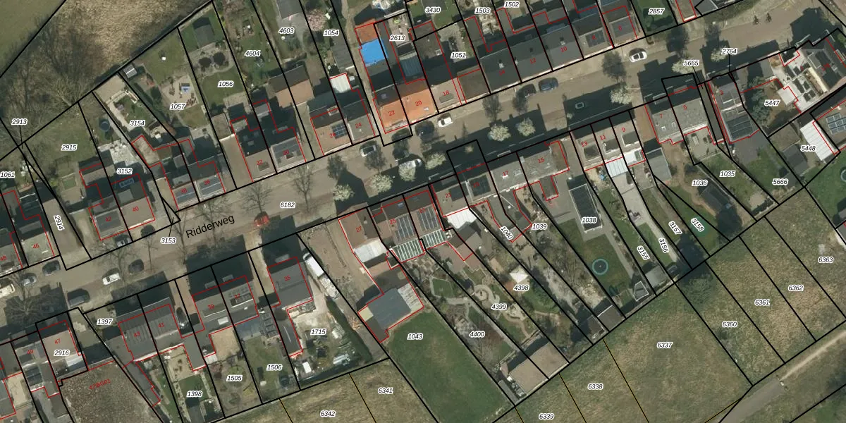 Het perceel waarop Ridderweg 23 staat heeft een oppervlakte van 395 m². Dit is een groot perceel. De perceeloppervlakte wordt geregistreerd door het Kadaster. Gedetailleerde informatie over de maten van dit perceel kunt u vinden in het rapport Kadastrale kaart met maatvoering van Ridderweg 23.