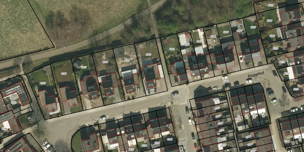 Het perceel waarop Roggehof 48 staat heeft een oppervlakte van 515 m². Dit is een groot perceel. De perceeloppervlakte wordt geregistreerd door het Kadaster. Gedetailleerde informatie over de maten van dit perceel kunt u vinden in het rapport Kadastrale kaart met maatvoering van Roggehof 48.