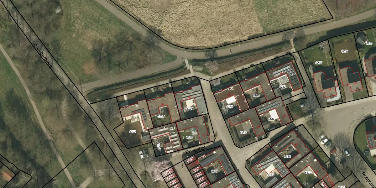 Het perceel waarop Roggehof 66 staat heeft een oppervlakte van 312 m². Dit is een groot perceel. De perceeloppervlakte wordt geregistreerd door het Kadaster. Gedetailleerde informatie over de maten van dit perceel kunt u vinden in het rapport Kadastrale kaart met maatvoering van Roggehof 66.