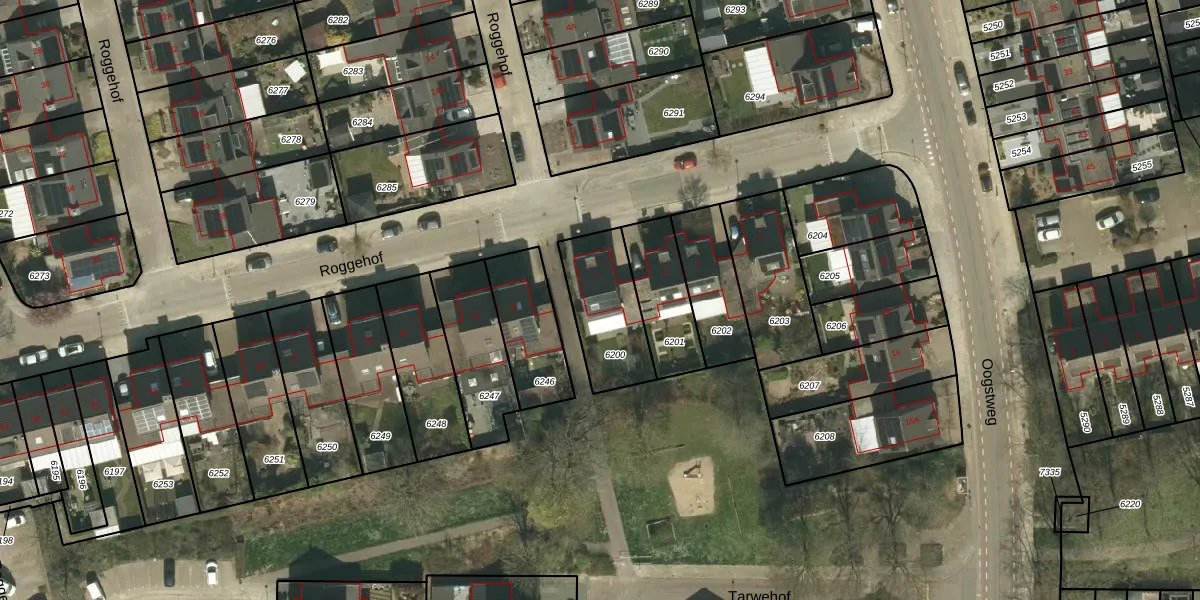 Het perceel waarop Roggehof 7 staat heeft een oppervlakte van 284 m². Dit is een middelgroot perceel. De perceeloppervlakte wordt geregistreerd door het Kadaster. Gedetailleerde informatie over de maten van dit perceel kunt u vinden in het rapport Kadastrale kaart met maatvoering van Roggehof 7.