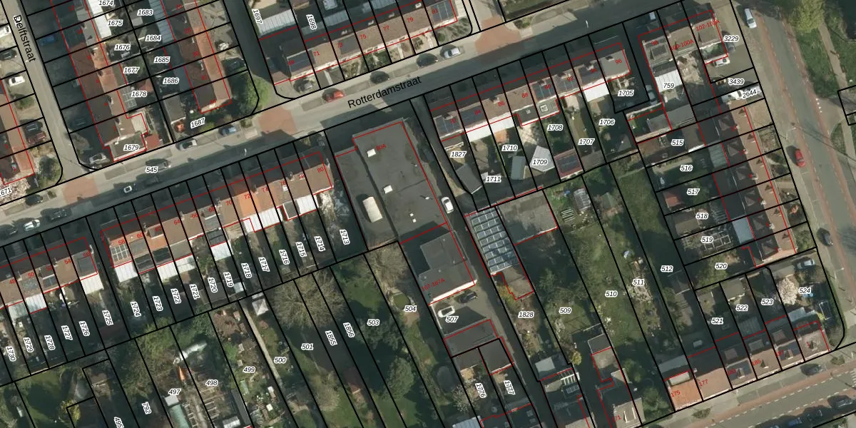 Het perceel waarop Rotterdamstraat 80-C staat heeft een oppervlakte van 1243 m². Dit is een zeer groot perceel. De perceeloppervlakte wordt geregistreerd door het Kadaster. Gedetailleerde informatie over de maten van dit perceel kunt u vinden in het rapport Kadastrale kaart met maatvoering van Rotterdamstraat 80-C.