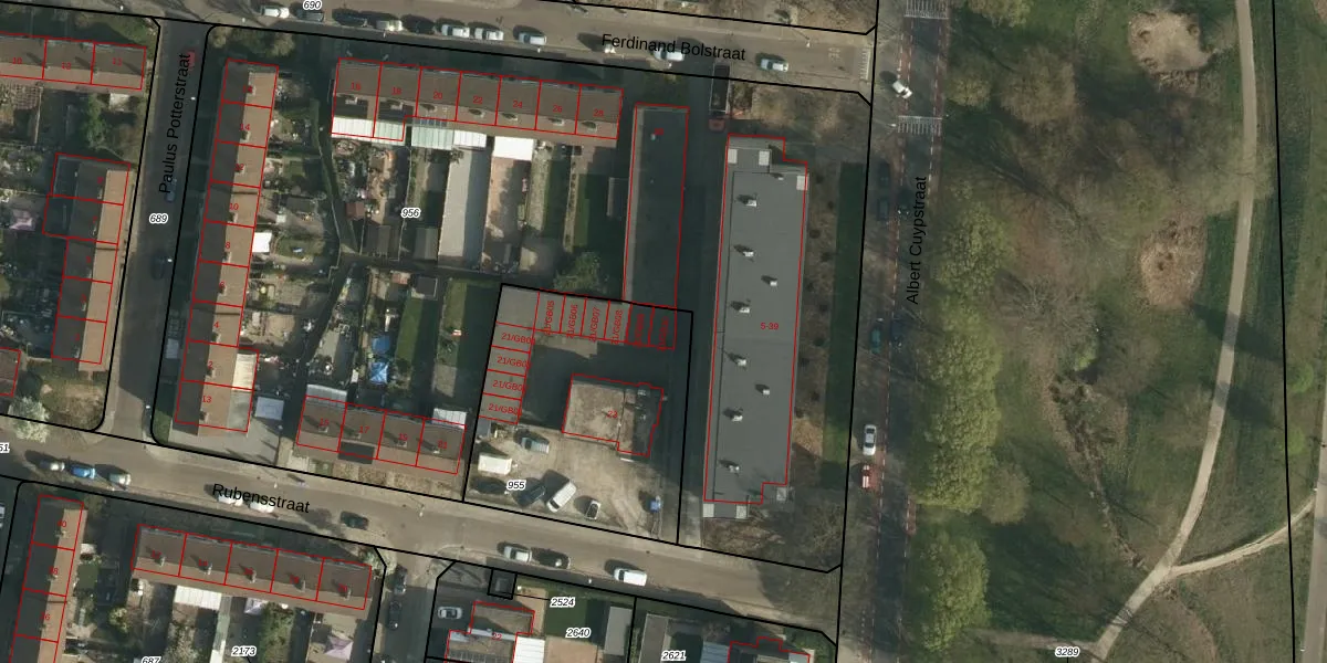 Rubensstraat 21-GB10 is gelegen op kadastraal perceel HLN01M955. Deze kadastrale aanduiding is uniek en wordt gebruikt door het Kadaster om eigendomsrechten en andere zakelijke rechten vast te leggen. Het perceel maakt onderdeel uit van de kadastrale gemeente Heerlen.