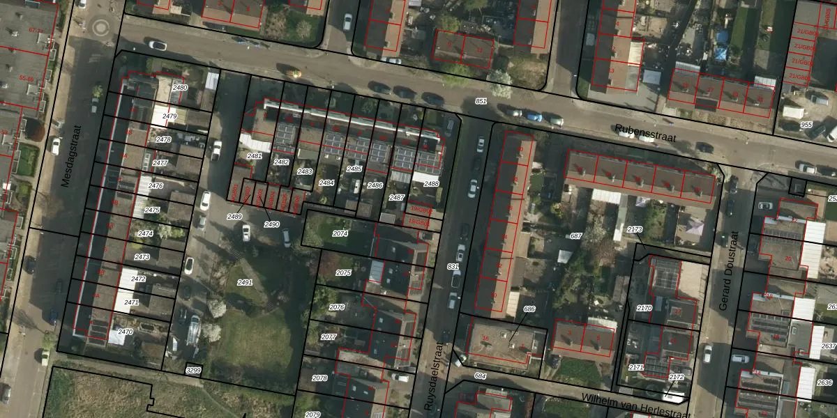 Ruysdaelstraat 19-GB02 is gelegen op kadastraal perceel HLN01M2488. Deze kadastrale aanduiding is uniek en wordt gebruikt door het Kadaster om eigendomsrechten en andere zakelijke rechten vast te leggen. Het perceel maakt onderdeel uit van de kadastrale gemeente Heerlen.