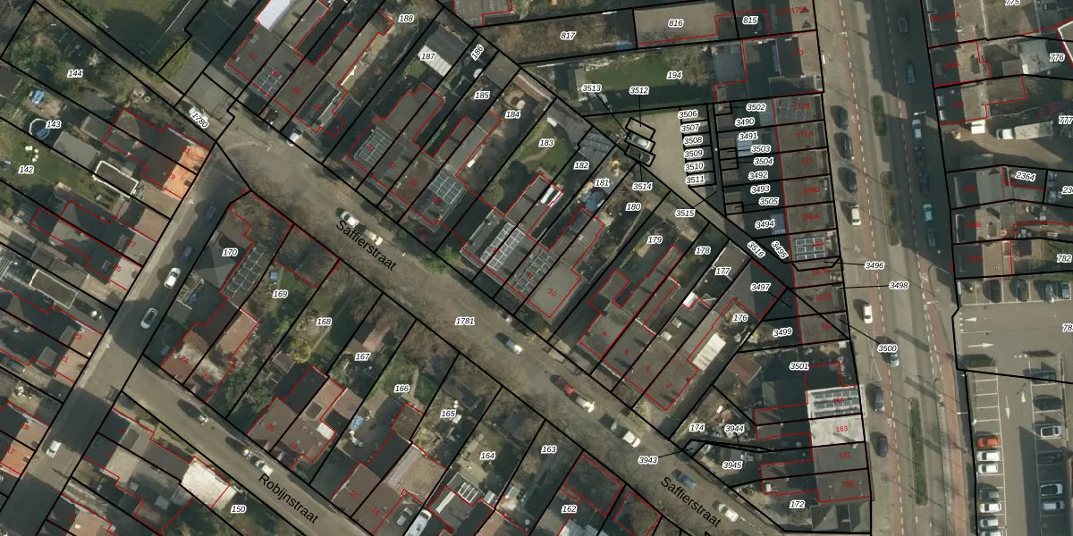 Saffierstraat 12 is gelegen op kadastraal perceel HLN01R181. Deze kadastrale aanduiding is uniek en wordt gebruikt door het Kadaster om eigendomsrechten en andere zakelijke rechten vast te leggen. Het perceel maakt onderdeel uit van de kadastrale gemeente Heerlen.