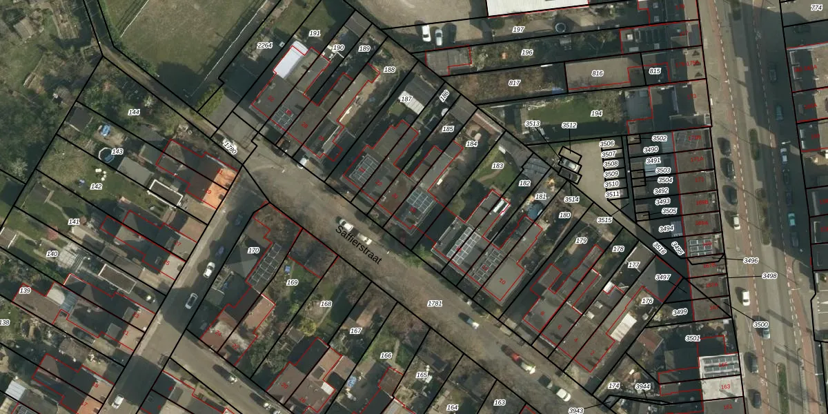 Saffierstraat 18 is gelegen op kadastraal perceel HLN01R184. Deze kadastrale aanduiding is uniek en wordt gebruikt door het Kadaster om eigendomsrechten en andere zakelijke rechten vast te leggen. Het perceel maakt onderdeel uit van de kadastrale gemeente Heerlen.