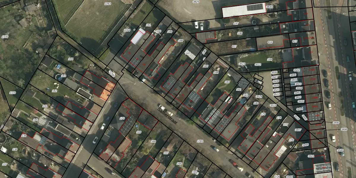 Gebruik de zoekbalk of klik op een perceel voor informatie over de adressen binnen dit perceel.