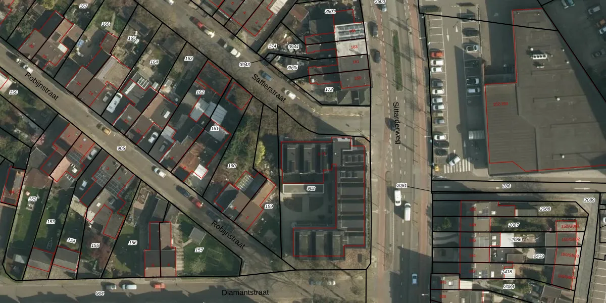 Het perceel waarop Saffierstraat 43 staat heeft een oppervlakte van 1375 m². Dit is een zeer groot perceel. De perceeloppervlakte wordt geregistreerd door het Kadaster. Gedetailleerde informatie over de maten van dit perceel kunt u vinden in het rapport Kadastrale kaart met maatvoering van Saffierstraat 43.