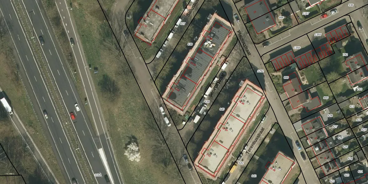 Het adres is gelegen op perceel 638 in de sectie H en de kadastrale gemeente Heerlen. De kadastrale aanduiding is aldus HLN01-H-638. De gemiddelde perceeloppervlakte in de kadastrale gemeente Heerlen is 1400,62 m². Dit perceel is met zijn 1620 m² dus groter dan gemiddeld. De grootste perceeloppervlakte in de kadastrale gemeente is 86,1 ha. De kleinste oppervlakte bedraagt 0 m². Er zijn 18 adressen aanwezig op het perceel. De huidige grenzen van het perceel zijn digitaal in de Basisregistratie Kadaster (BRK) geregistreerd op 19-06-2009.