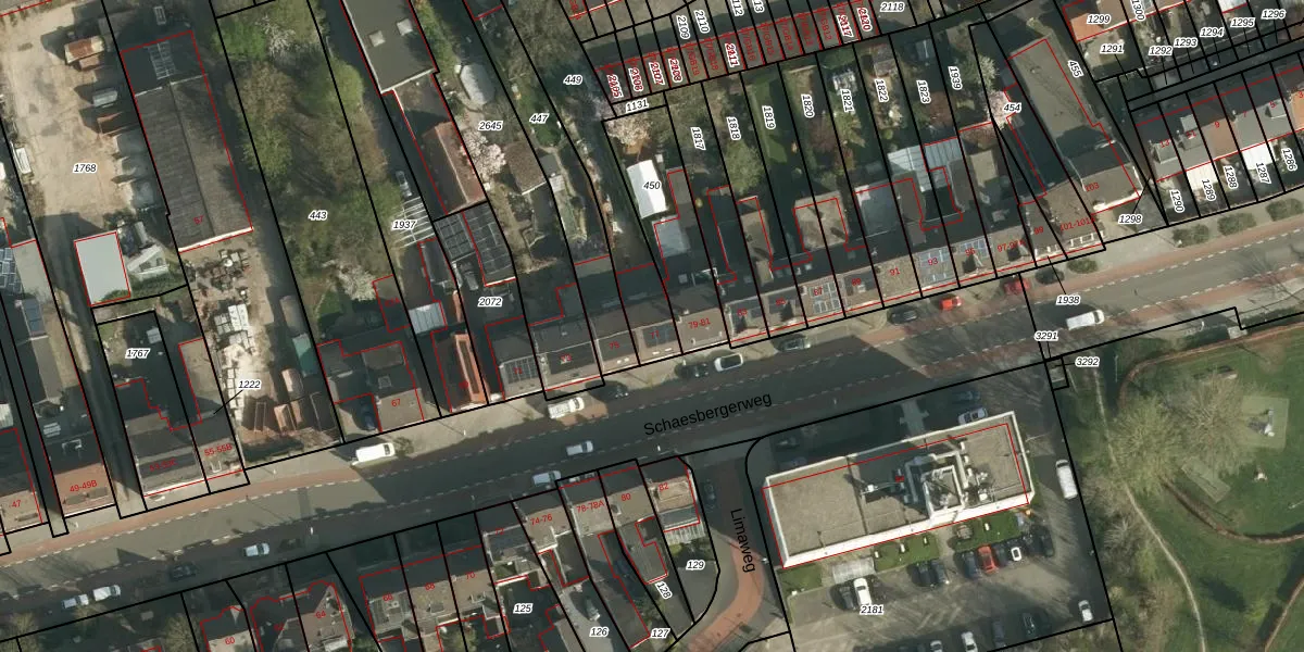 Schaesbergerweg 77 is gelegen op kadastraal perceel HLN01M449. Deze kadastrale aanduiding is uniek en wordt gebruikt door het Kadaster om eigendomsrechten en andere zakelijke rechten vast te leggen. Het perceel maakt onderdeel uit van de kadastrale gemeente Heerlen.