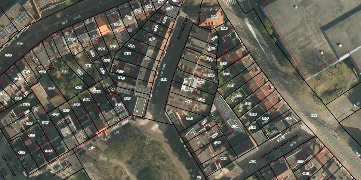 Schoolstraat 15 is gelegen op kadastraal perceel HLN01E3350. Deze kadastrale aanduiding is uniek en wordt gebruikt door het Kadaster om eigendomsrechten en andere zakelijke rechten vast te leggen. Het perceel maakt onderdeel uit van de kadastrale gemeente Heerlen.