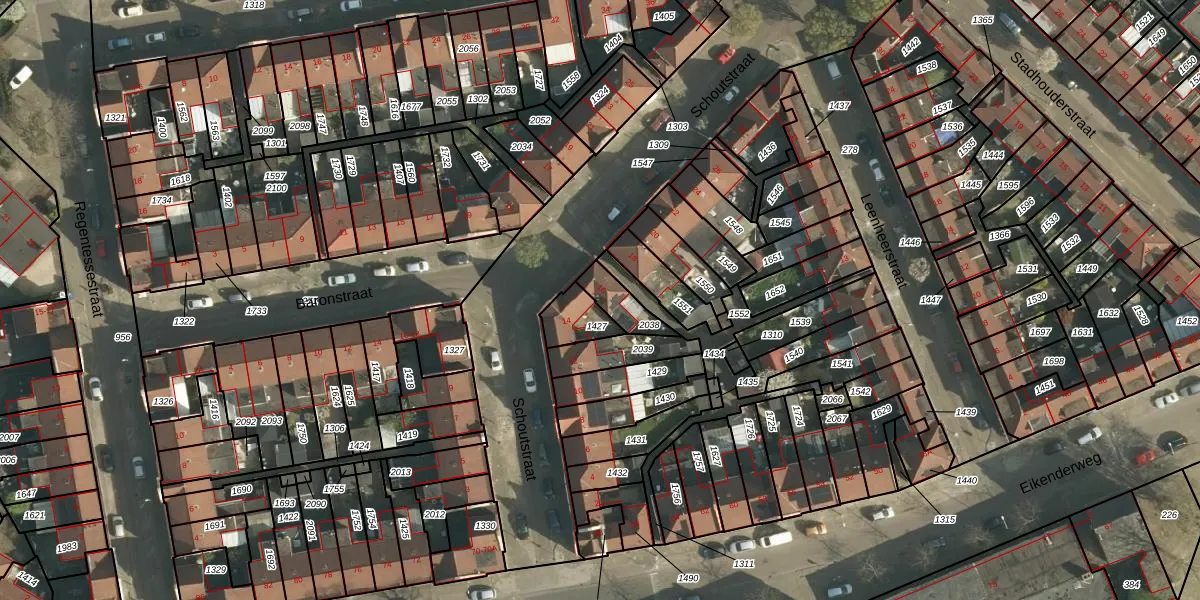 Het perceel waarop Schoutstraat 16 staat heeft een oppervlakte van 80 m². Dit is een klein perceel. De perceeloppervlakte wordt geregistreerd door het Kadaster. Gedetailleerde informatie over de maten van dit perceel kunt u vinden in het rapport Kadastrale kaart met maatvoering van Schoutstraat 16.