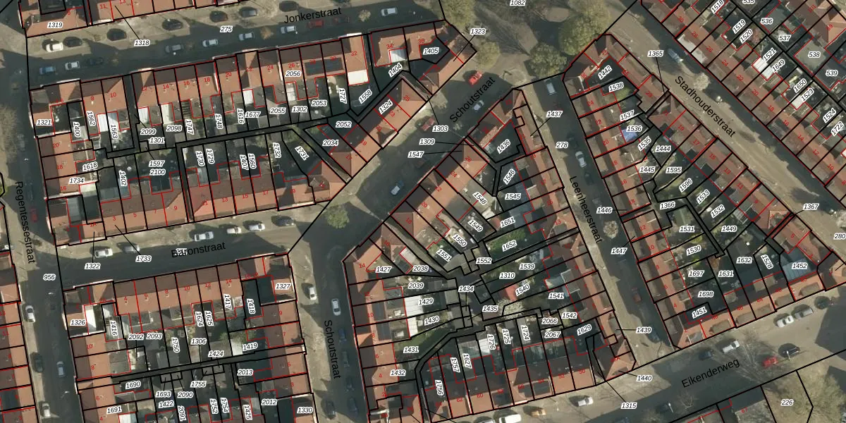 Het perceel waarop Schoutstraat 20 staat heeft een oppervlakte van 102 m². Dit is een middelgroot perceel. De perceeloppervlakte wordt geregistreerd door het Kadaster. Gedetailleerde informatie over de maten van dit perceel kunt u vinden in het rapport Kadastrale kaart met maatvoering van Schoutstraat 20.