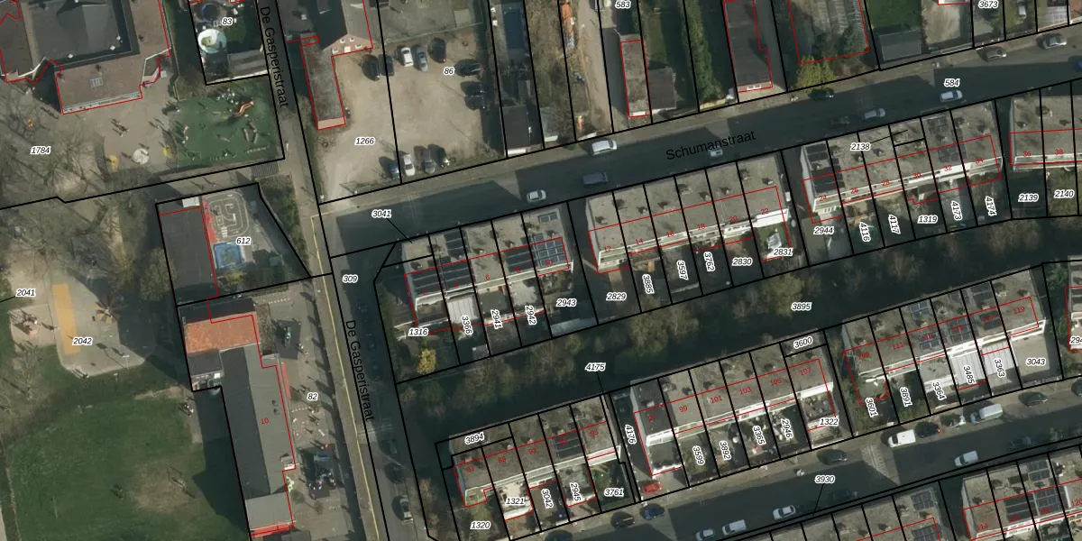 Gebruik de zoekbalk of klik op een perceel voor informatie over de adressen binnen dit perceel.