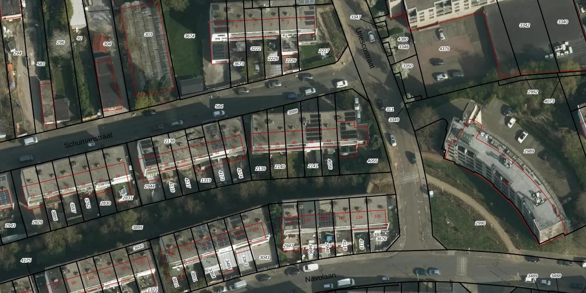 Schumanstraat 40 is gelegen op kadastraal perceel HLN01O3888. Deze kadastrale aanduiding is uniek en wordt gebruikt door het Kadaster om eigendomsrechten en andere zakelijke rechten vast te leggen. Het perceel maakt onderdeel uit van de kadastrale gemeente Heerlen.